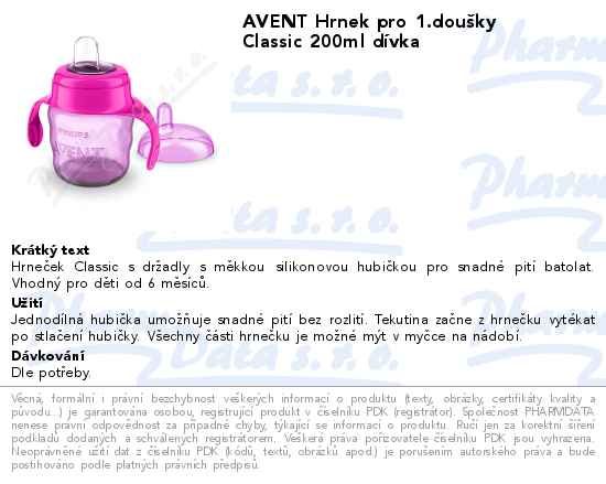 AVENT Hrnek pro 1.doušky Classic 200ml dívka