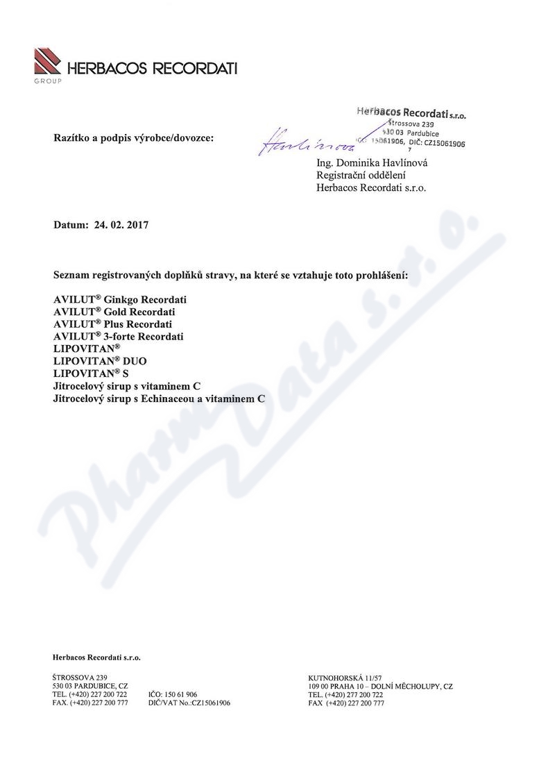 Výrobce: HERBACOS-RECORDATI S.R.O.