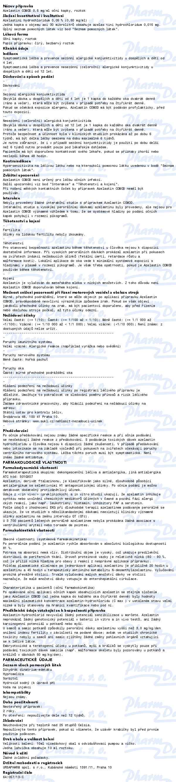 Azelastin Comod 0.5mg/ml oph.gtt.sol.1x10ml/5mg