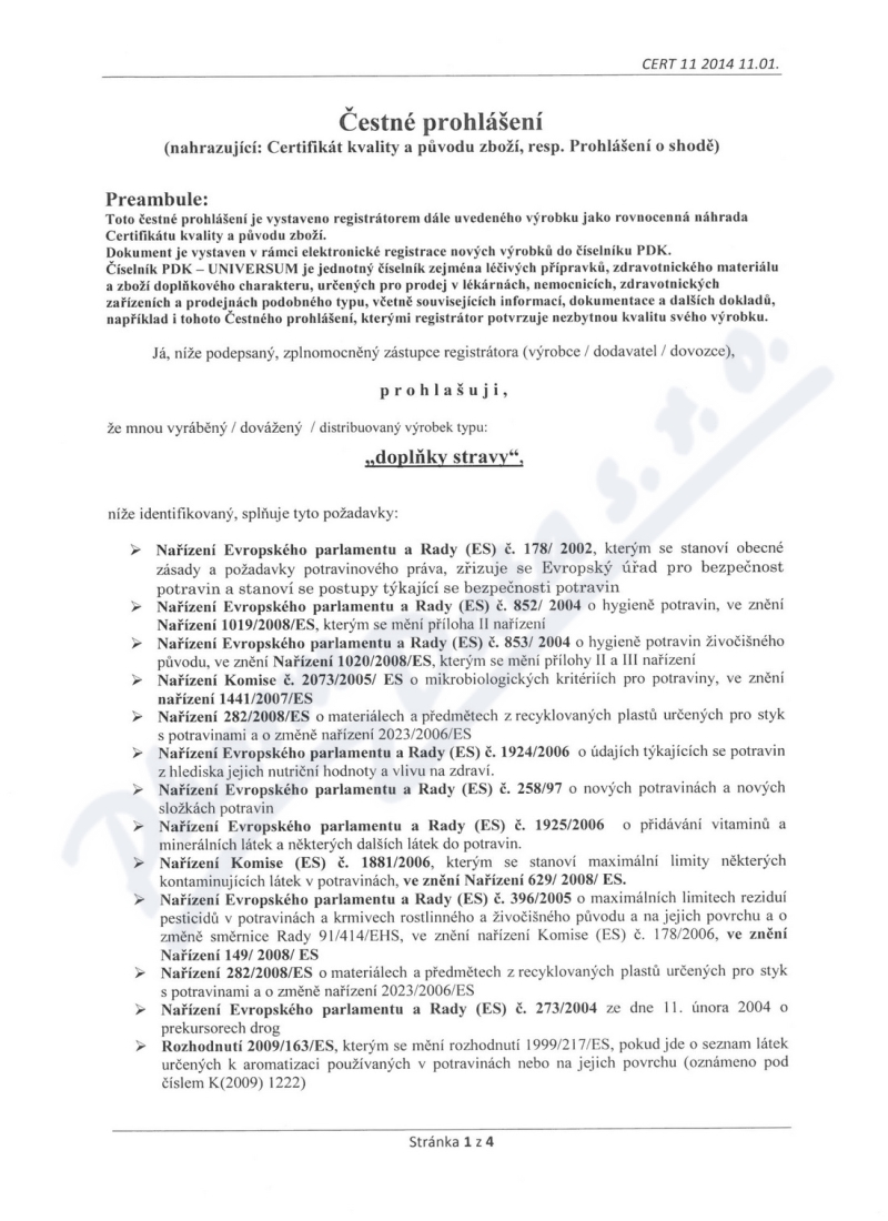 4 strany čestného prohlášení: strana 1, strana 2, strana 3, strana 4,