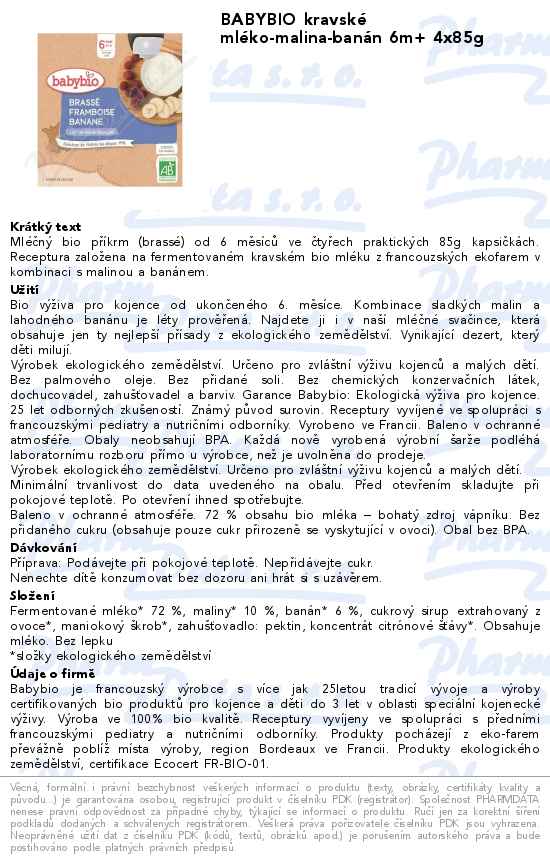 BABYBIO kravské mléko-malina-banán 6m+ 4x85g