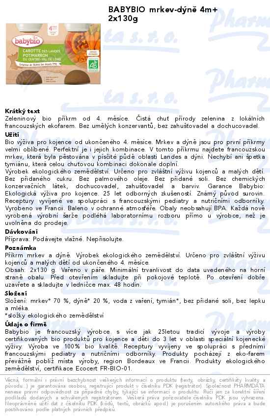 BABYBIO mrkev-dýně 4m+ 2x130g