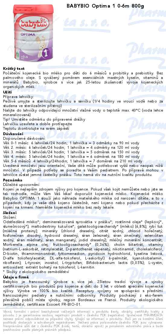 BABYBIO Optima 1 0-6m 800g