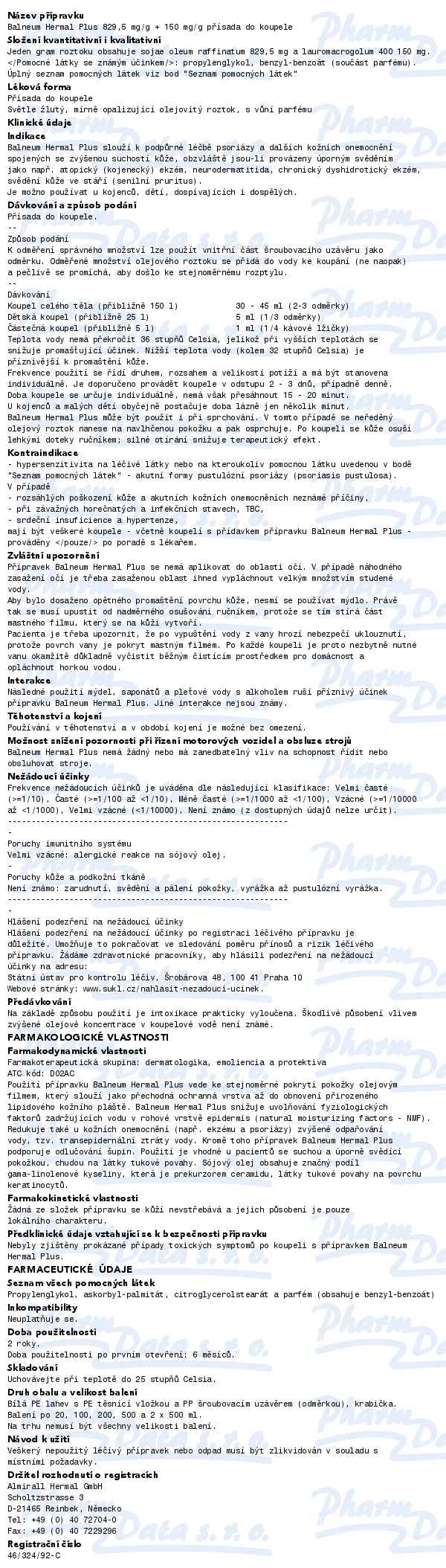 Balneum Hermal Plus 829.5mg/g+150mg/g bal.500ml