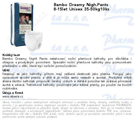 Bambo Dreamy Nigh.Pants 8-15let Unisex 35-50kg10ks