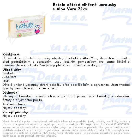 Batole dětské vlhčené ubrousky s Aloe Vera 72ks