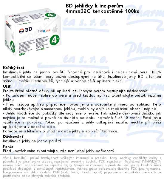 BD jehličky k inz.perům 4mm 32G tenkostěnné 100ks