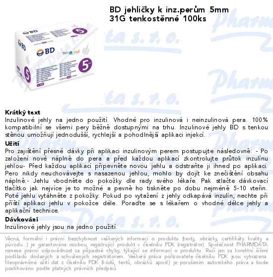 BD jehličky k inz.perům 5mm 31G tenkostěnné 100ks