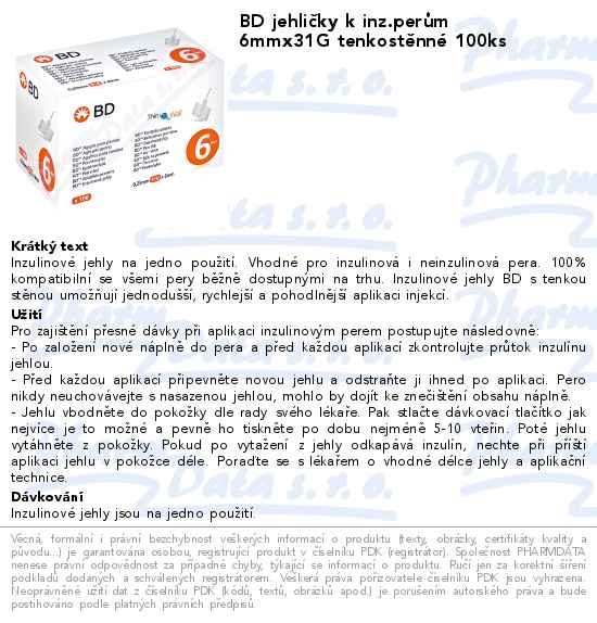 BD jehličky k inz.perům 6mm 31G tenkostěnné 100ks