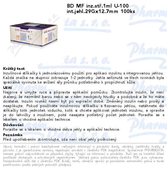BD MF inz.stř.1ml U-100 int.jehl.29Gx12.7mm 100ks