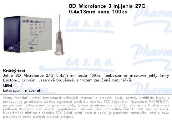 BD Microlance 3 inj.jehla 27G 0.4x13mm šedá 100ks