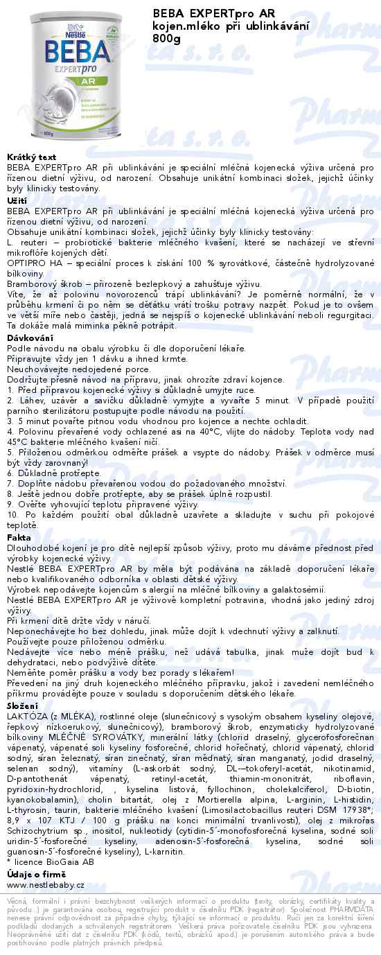 BEBA EXPERTpro AR kojen.mléko při ublinkávání 800g
