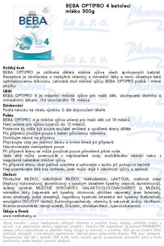 BEBA OPTIPRO 4 batolecí mléko 500g