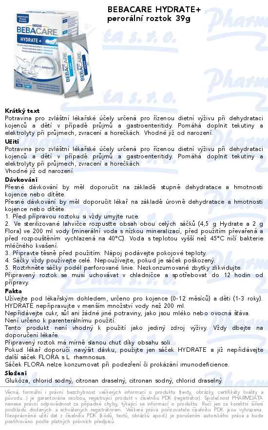 BEBACARE HYDRATE+ perorální roztok 39g