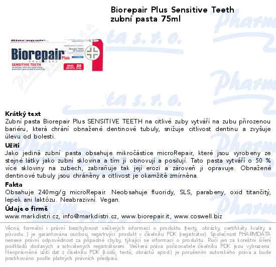 Biorepair Plus Sensitive Teeth zubní pasta 75ml