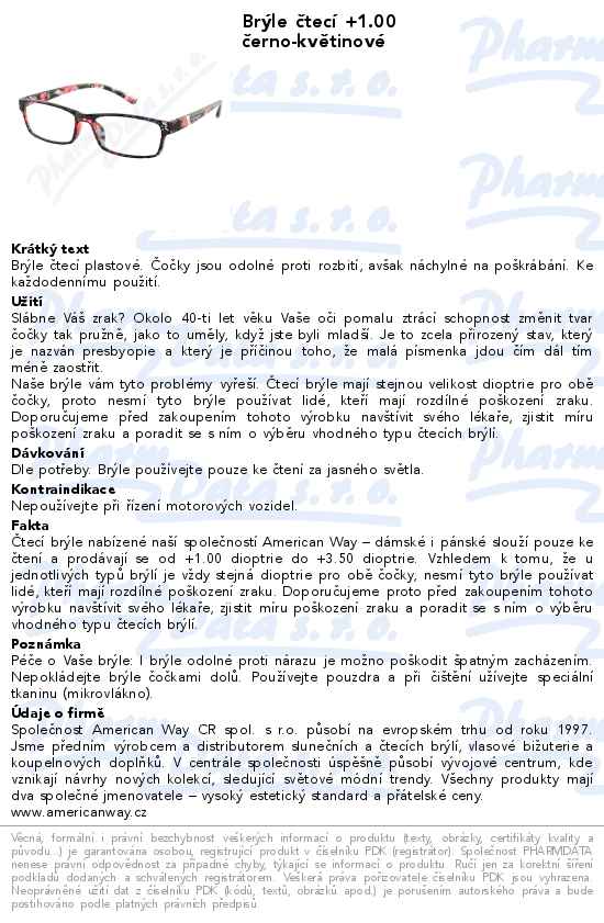 Brýle čtecí +1.00 černo-květinové