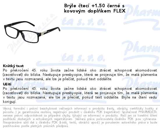 Brýle čtecí +1.50 černé s kovovým doplňkem FLEX