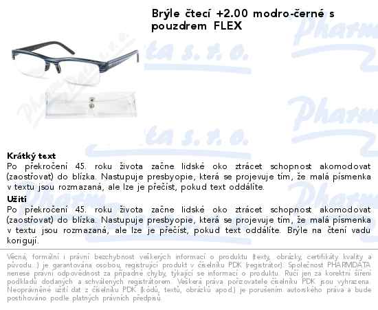 Brýle čtecí +2.00 modro-černé s pouzdrem FLEX