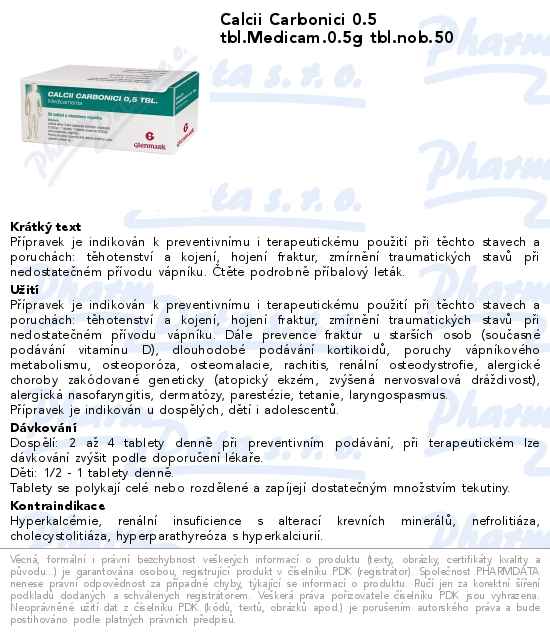 Calcii Carbonici 0.5 tbl.Medicam.0.5g tbl.nob.50