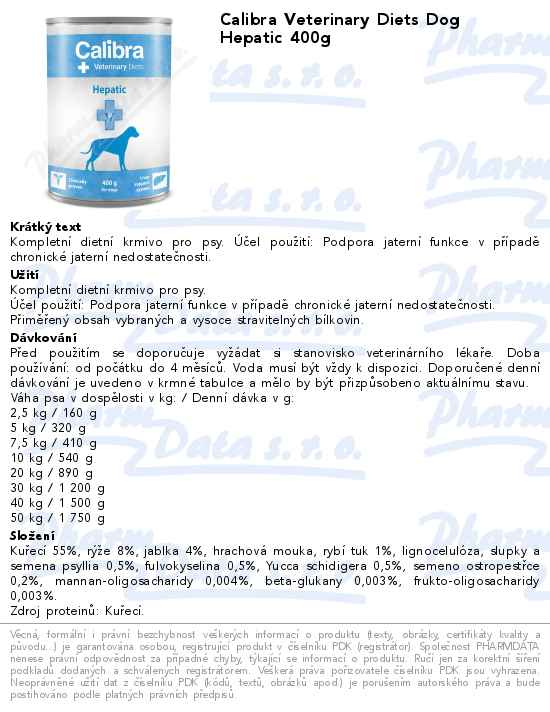 Calibra Veterinary Diets Dog Hepatic 400g