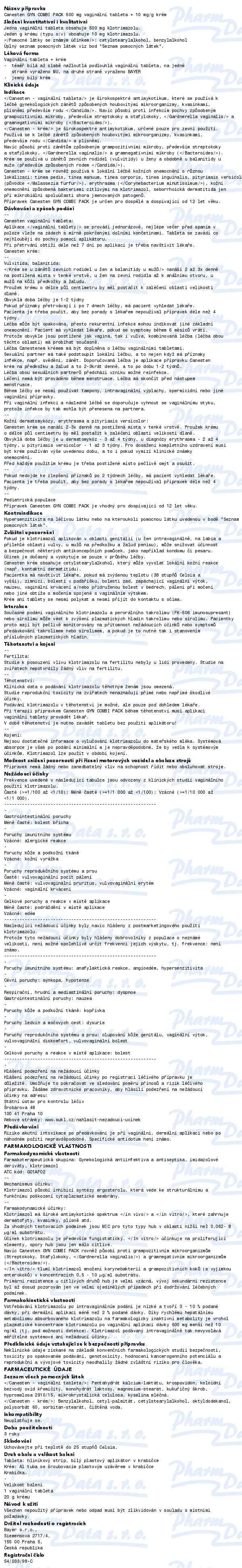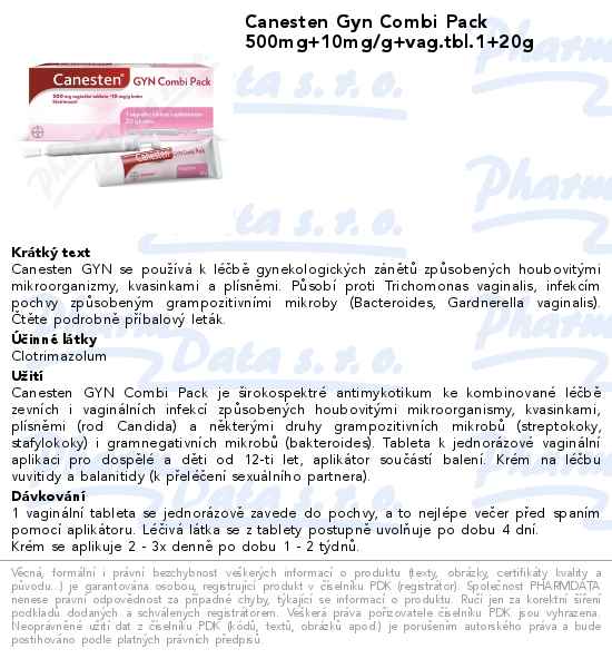 Canesten Gyn Combi Pack 500+10mg/g crm+v.tbl.1+20g