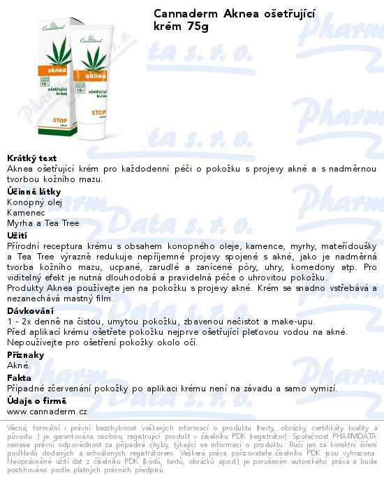 Cannaderm Aknea ošetřující krém 75g