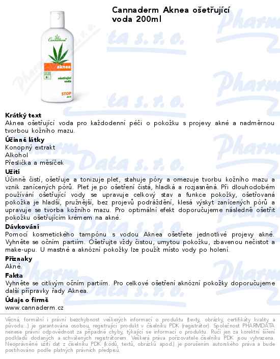 Cannaderm Aknea ošetřující voda 200ml