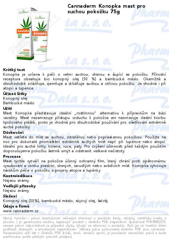Cannaderm Konopka mast pro suchou pokožku 75g