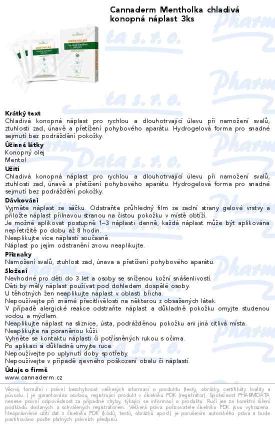 Cannaderm Mentholka chladivá konopná náplast 3ks