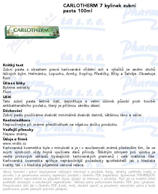 CARLOTHERM 7 bylinek zubní pasta 100ml