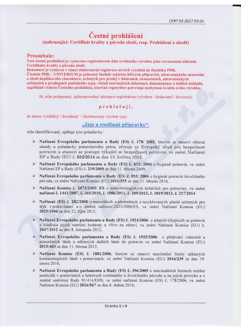 4 strany čestného prohlášení: strana 1, strana 2, strana 3, strana 4,