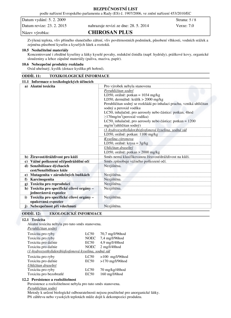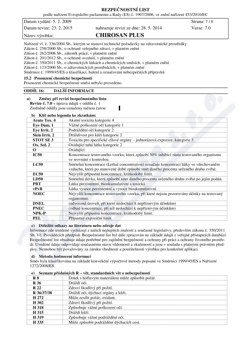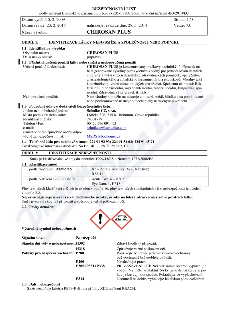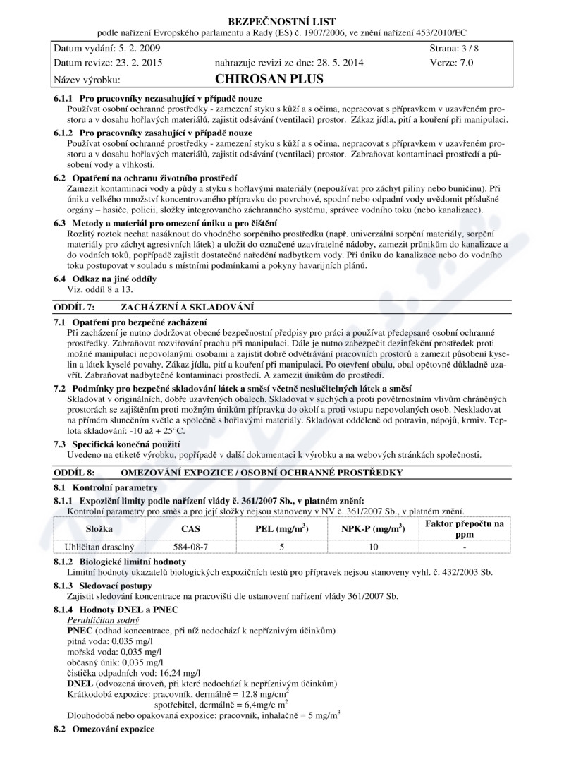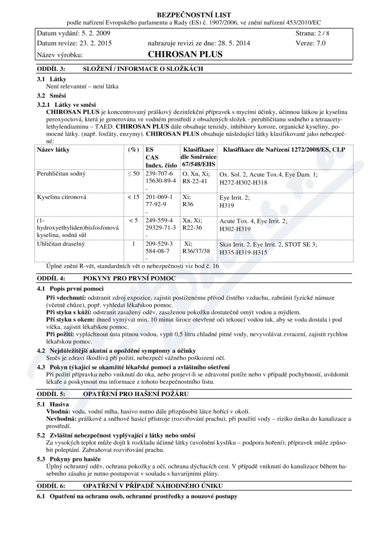 8 strany bezpečnostních listů: strana 1, strana 2, strana 3, strana 4, strana 5, strana 6, strana 7, strana 8,