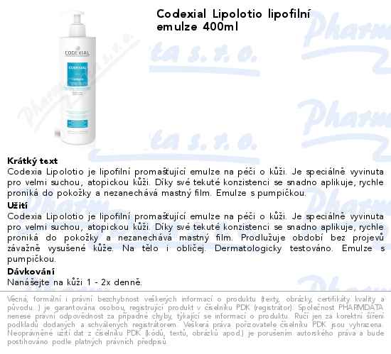 Codexial Lipolotio lipofilní emulze 400ml