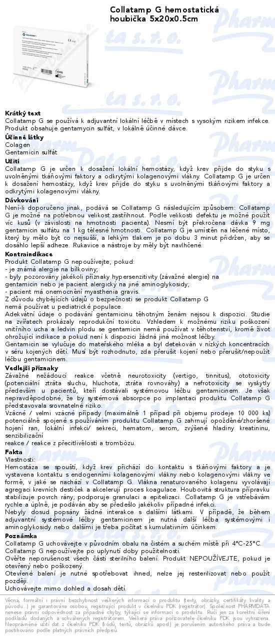 Collatamp G hemostatická houbička 5x20x0.5cm