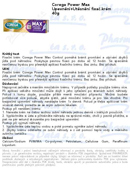 Corega Power Max Upevnění+Utěsnění fixač.krém 40g