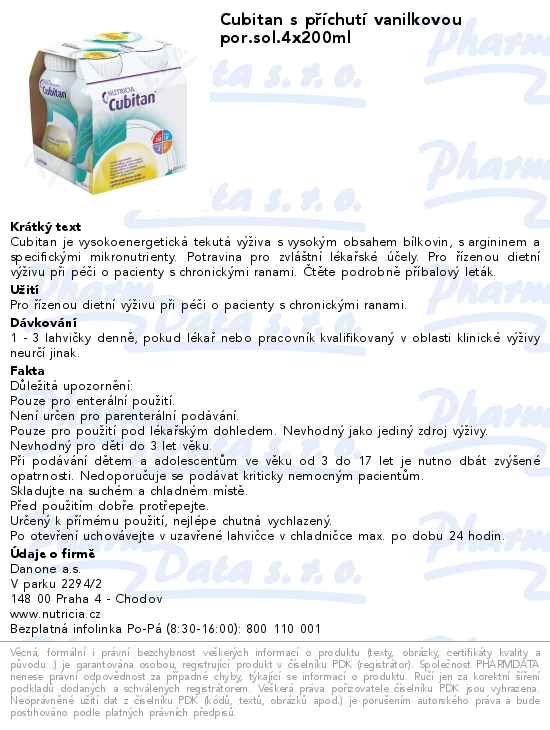 Cubitan s příchutí vanilkovou por.sol.4x200ml