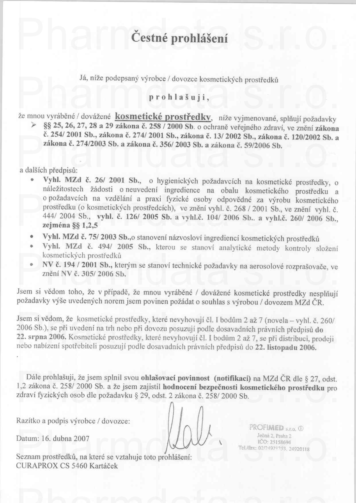 čestné prohlášení