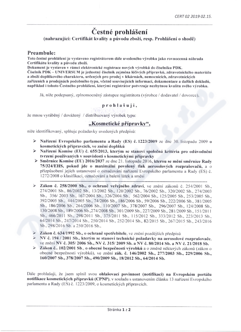 2 strany čestného prohlášení: strana 1, strana 2,