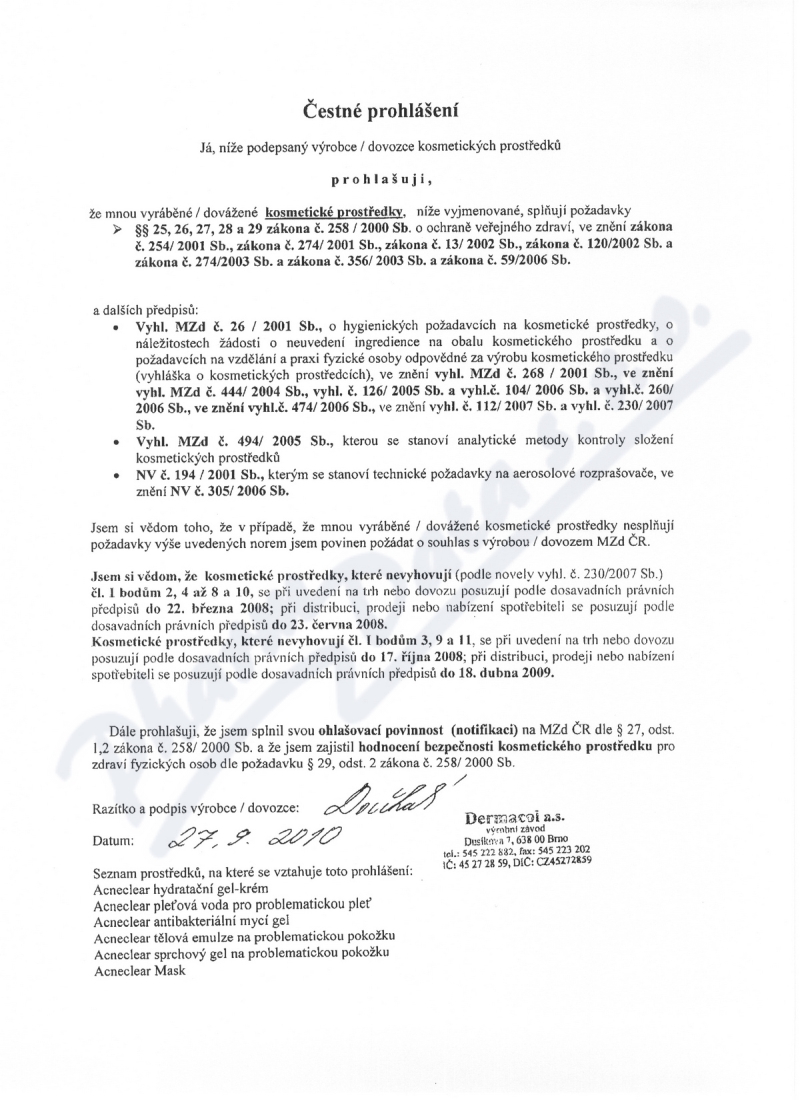 čestné prohlášení