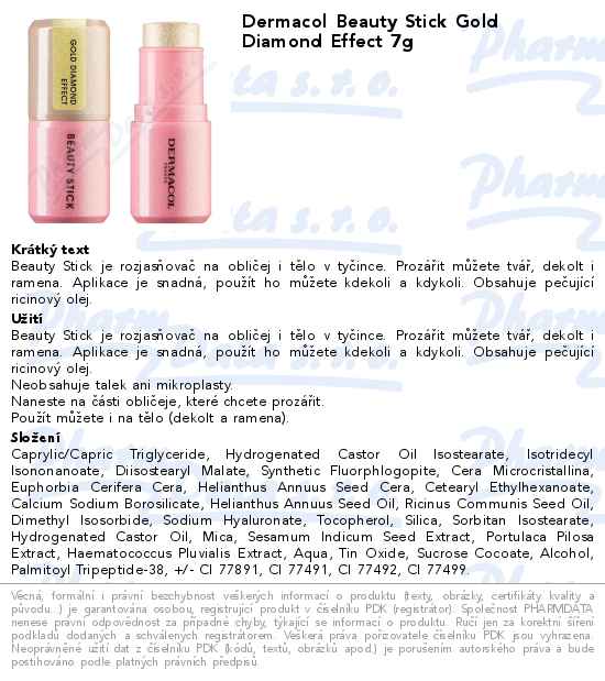Dermacol Beauty Stick Gold Diamond Effect 7g
