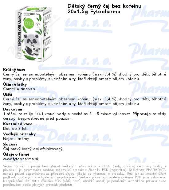 Dětský černý čaj bez kofeinu 20x1.5g Fytopharma