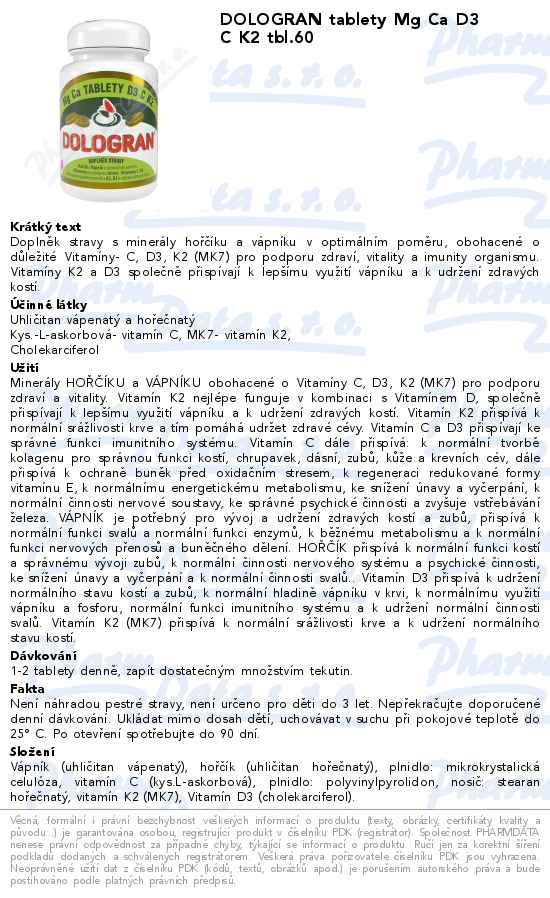 DOLOGRAN tablety Mg Ca D3 C K2 tbl.60