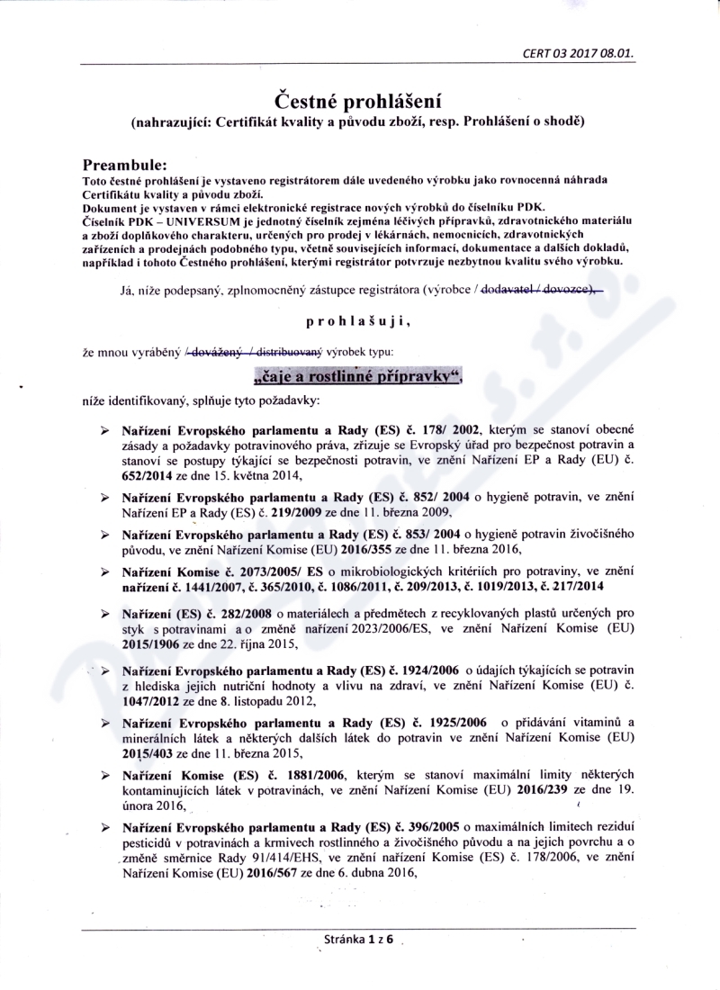 6 strany čestného prohlášení: strana 1, strana 2, strana 3, strana 4, strana 5, strana 6,