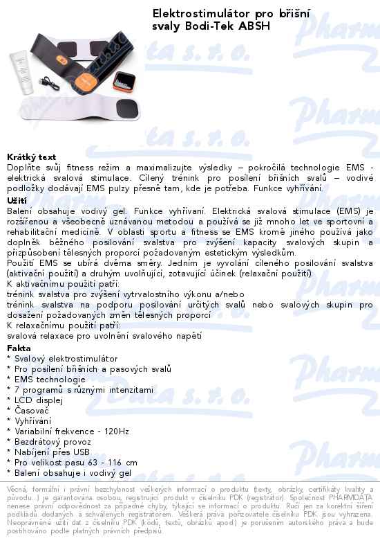 Elektrostimulátor pro břišní svaly Bodi-Tek ABSH