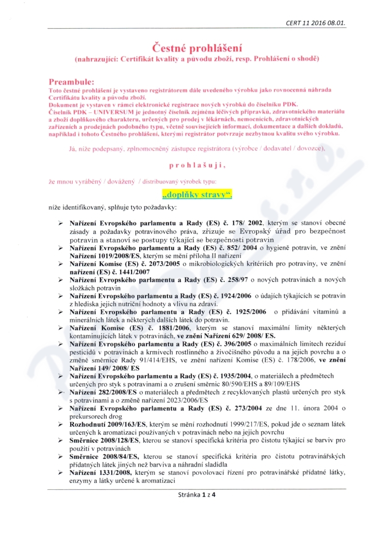 4 strany čestného prohlášení: strana 1, strana 2, strana 3, strana 4,