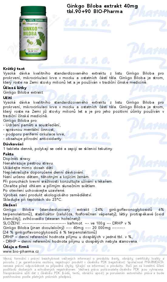 Ginkgo Biloba extrakt 40mg tbl.90+90 BIO-Pharma
