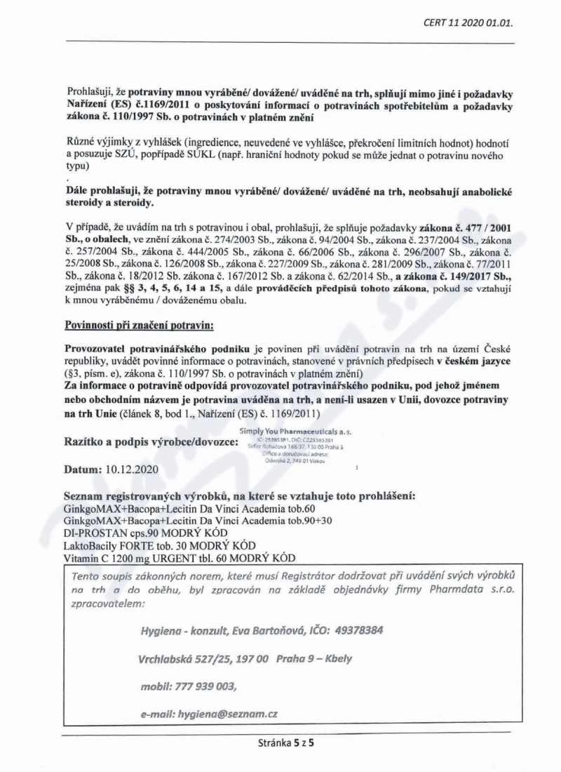 5 strany čestného prohlášení: strana 1, strana 2, strana 3, strana 4, strana 5,