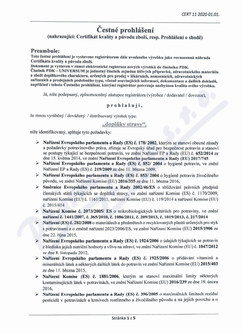5 strany čestného prohlášení: strana 1, strana 2, strana 3, strana 4, strana 5,
