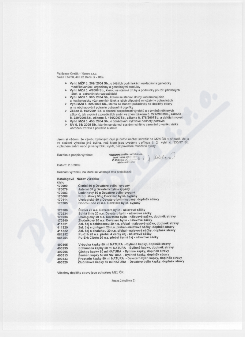 Výrobce: VALDEMAR GREŠÍK - NATURA S.R.O.