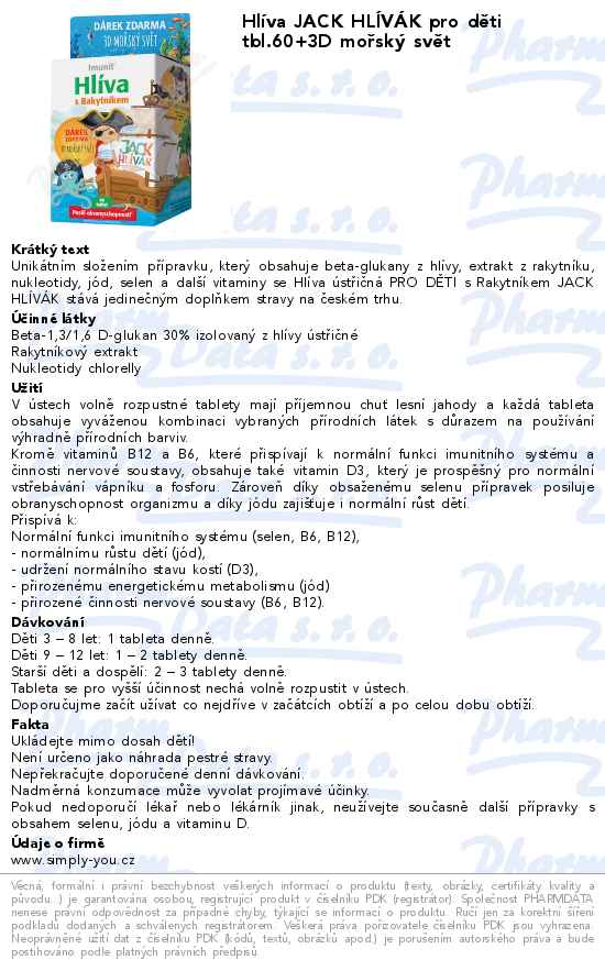 Hlíva JACK HLÍVÁK pro děti tbl.60+3D mořský svět